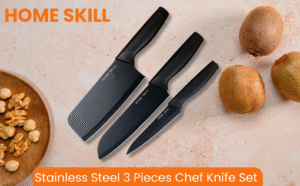 Be the first to review “HOME SKILL® Professional Kitchen Knife Set, Stainless Steel, 3 Pieces, Non-Slip Ergonomic Handle, Sharp, Manual Sharpening, Black”